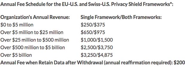 COST FOR PRIVACY SHIELD CERTIFICATION: